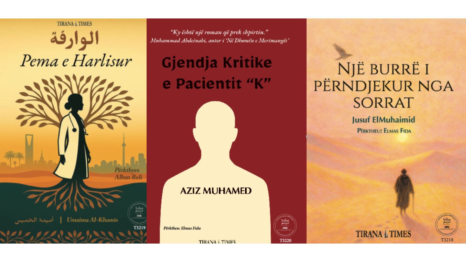 Me rastin e Javës Kulturore të Mbretërisë së Arabisë Saudite, që hapet nesër në Tiranë me një ceremoni madhështore, Shtëpia Botuese Tirana Times ka sjellë për lexuesin shqiptar tre përkthime të reja të romaneve bashkëkohore saudite. Titujt – Gjendja Kritike e Pacientit “K” nga Aziz Muhamed, Pema e Harlisur nga Umaima Al-Khamis dhe Një burrë i përndjekur nga sorrat nga Jusuf ElMuhaimeed – përfaqësojnë disa nga zërat më të vlerësuar të letërsisë saudite të ditëve tona.
